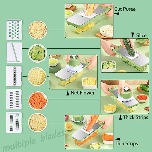 - 【قطاعة طعام لمهارات تقطيع متعددة】: بفضل مجموعة متنوعة من قطاعات الخضروات ذات الشفرات، يمكنك التقطيع والتقطيع لشرائح بسهولة. بفضل أداة تقطيع الخضروات هذه، يمكنك بسهولة اكتساب مجموعة متنوعة من مهارات القطع.
