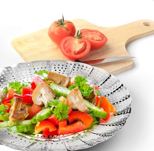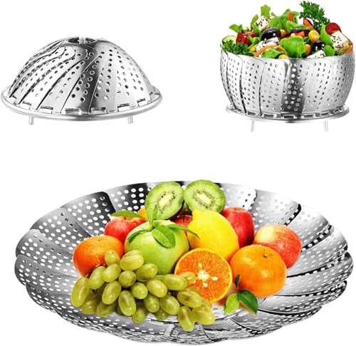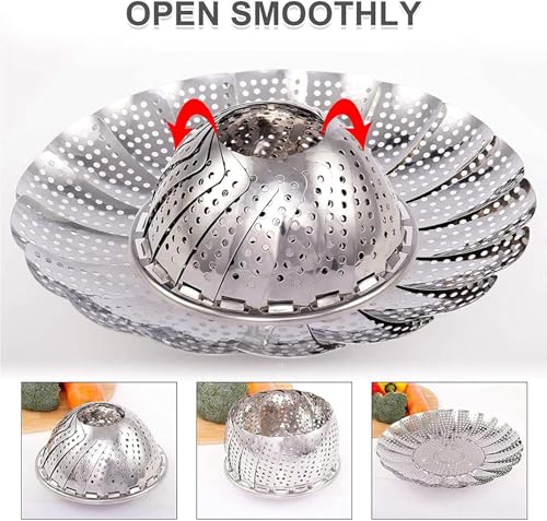 Generic - سلة طبخ الخضروات بالبخار – مصفاة بخارية قابلة للتعديل من الفولاذ المقاوم للصدأ، مناسبة للمقالي، الأواني الخزفية، قدر الضغط، وطباخ الأرز