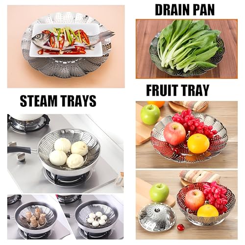 - بفضل تصميمها متعدد الاستخدامات، يمكن لهذه المصفاة أن تتناسب مع أحجام مختلفة من الأواني، مما يجعلها مناسبة لاحتياجات الطهي المختلفة، سواء كنت تقوم بطهي البروكلي أو الجزر أو أي خضروات أخرى على البخار.