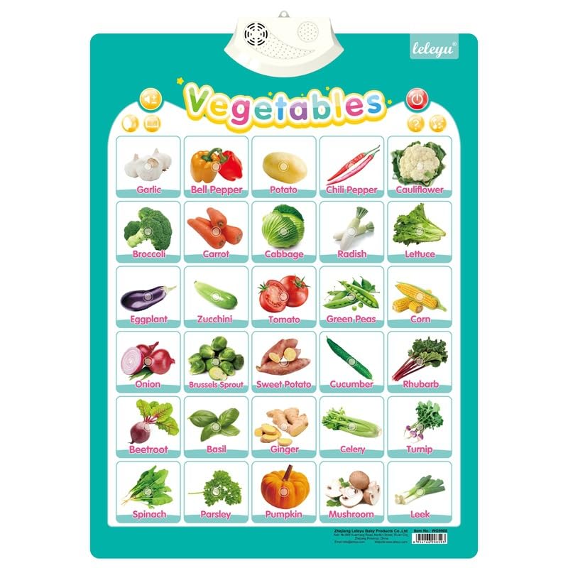 Generic - مخطط تعليمي للخضروات، ملصق صوتي تفاعلي، 30 خضروات مع اسم، اداة تعلم للاطفال