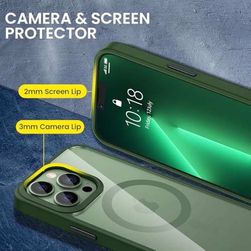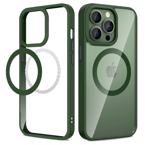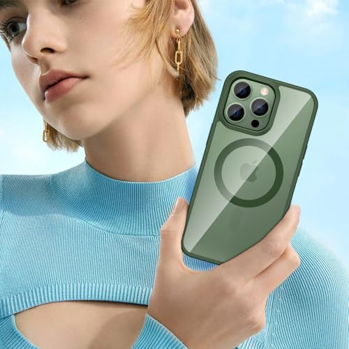 VEGO - جراب خلفي صلب شفاف بتصميم رفيع مضاد للصدمات مع مغناطيس قوي مدمج لموبايل آيفون 13 برو ماكس وآيفون 12 برو ماكس مقاس 6.7 بوصة، أخضر (الباين جرين) من فيجو