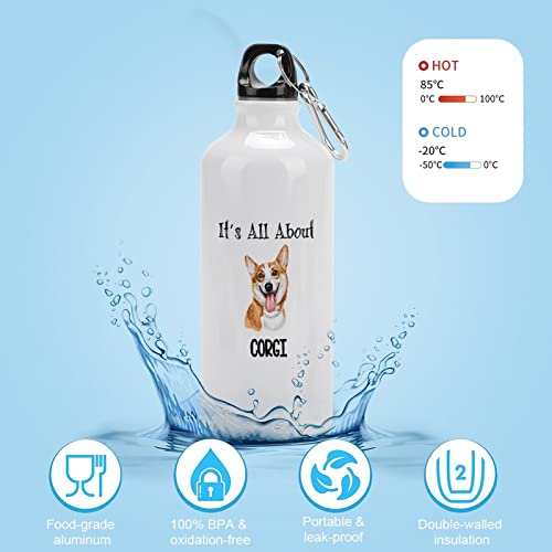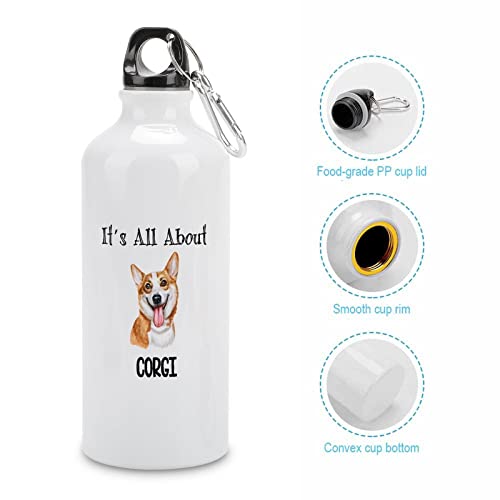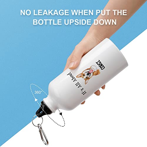 VEHFA - زجاجة مياه رياضية للسفر بتصميم كلب وعبارة «It's All About» زجاجة مياه من الألومنيوم مع مشبك حلقة تسلق وجزء علوي رياضي، باقتباسات مرحة، 591 مل