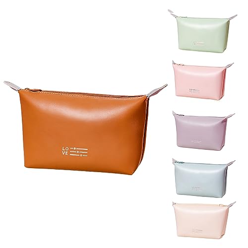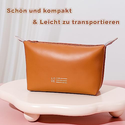 Spaceshoop - شنطة أدوات الزينة للنساء من فيي، شنطة مستحضرات تجميل للسفر من الجلد الصناعي، شنطة مكياج محمولة مقاومة للماء للرجال والنساء - بني