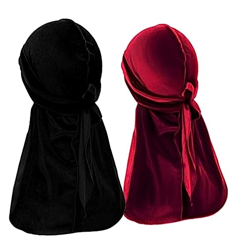 Generic - قبعات دوراجز المخملية للرجال عبوة من قطعتين قياس موحد دو راجز المصممة ذات الذيل الطويل قبعة باشرطة عريضة ناعمة للتموجات لون اسود واحمر نبيذي أسود ونبيذي