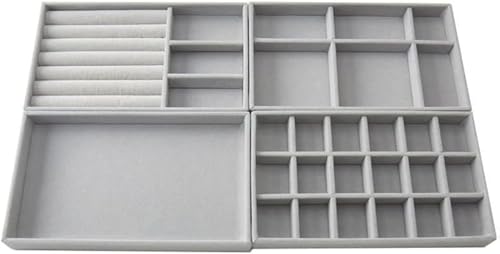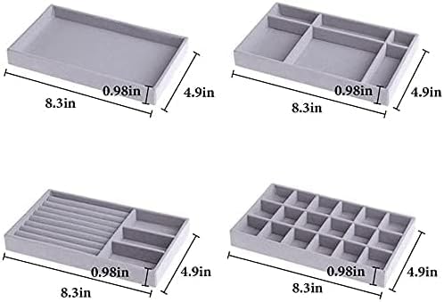 Generic - مجموعة صينية تنظيم ادراج المجوهرات المخملية، تخزين متعدد الاقسام للخواتم والقلائد والاكسسوارات، رمادي