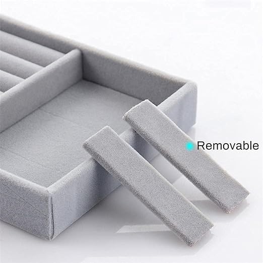 - خامة فاخرة: بطانة مخملية ناعمة تحمي الأشياء الحساسة من الخدوش مع توفير لمسة نهائية رمادية أنيقة تكمل أي ديكور
