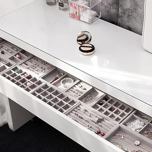 - كفاءة في المساحة: تصميم صغير الحجم يزيد من مساحة الدرج مع الحفاظ على المجوهرات مرتبة بشكل مثالي ويسهل الوصول إليها