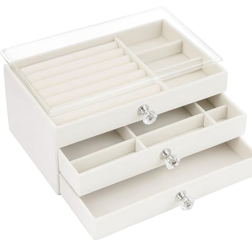 Generic - صندوق منظم مجوهرات مبطن قطيفة مكون من 3 طبقات - حافظة اكريليك شفافة بمقابض كريستال للخواتم والحلقان والسلاسل - منظم أنيق للمنزل أو البوتيك