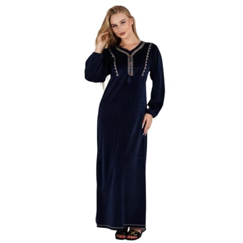 ZECOTEX - عباية شتوية مطرزة من القطيفة للنساء، ثوب نوم منزلي شتوي أنيق، عباية استقبال شتوية قطيفة مطرزة