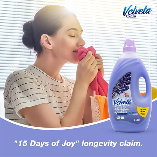 - انتعاش يدوم طويلًا: يغمر منعم الأقمشة من فيلفيتا الغسيل برائحة اللافندر المبهجة التي تدوم طويلًا، مما يحافظ على رائحة ملابسك منعشة لعدة أيام.