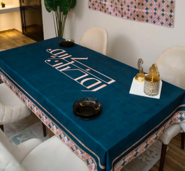 Generic - مفرش طاولة مخملي من القماش الناعم، ازرق مخضر مع حواف زخرفية، متوفر بمقاسات متعددة، يناسب طاولة طعام 6-8 اشخاص (140 × 200)