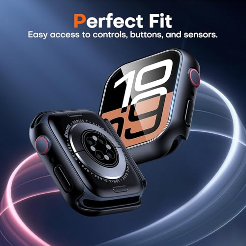 VEMIGON - حافظة حماية من فيميجون متوافقة مع ابل ووتش سيريز 10 42mm بتصميم كيس مصنوعة من البولي كربونات والزجاج المقسى باللون الأسود