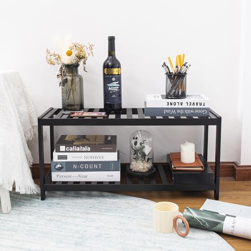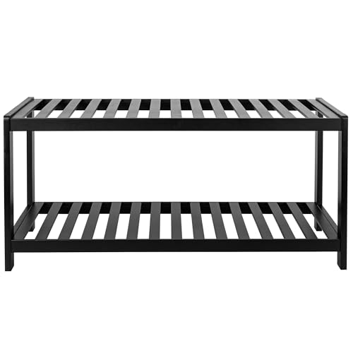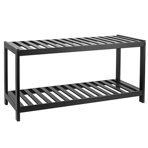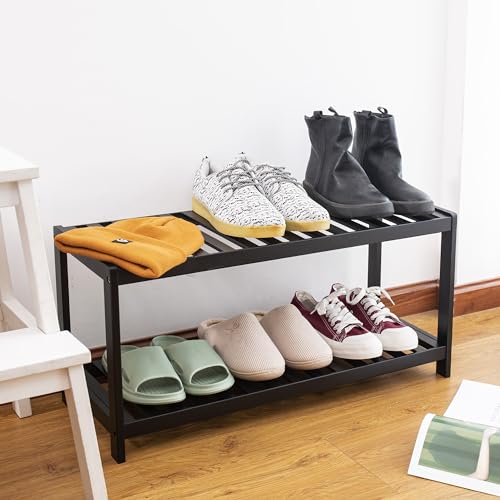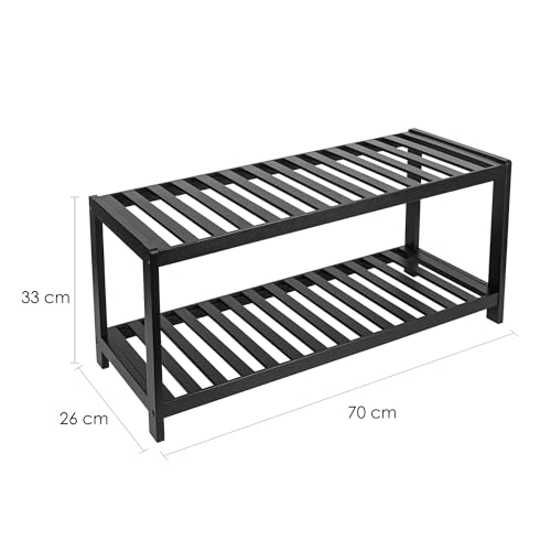 Vencier - رف احذية من الخيزران بطبقتين فينسير ارفف للرواق وغرفة النوم والحمام المعيشة حامل منظم لتخزين 8 ازواج الاحذية اسود خشب