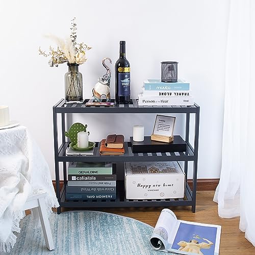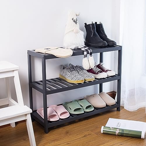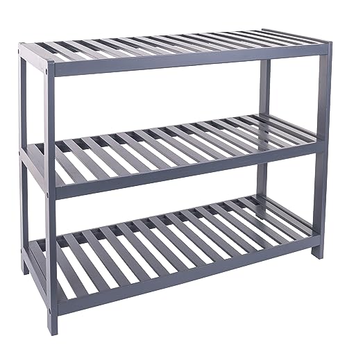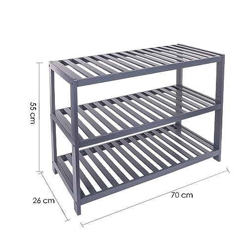 Vencier - منظم رفوف أحذية من الخيزران 3 طبقات فينسير 12 زوج الأحذية 70 × 26 55 سم - مثالية للممر أو غرفة المعيشة الحمام النوم الرواق رمادي