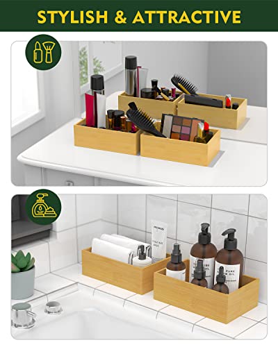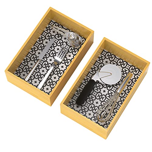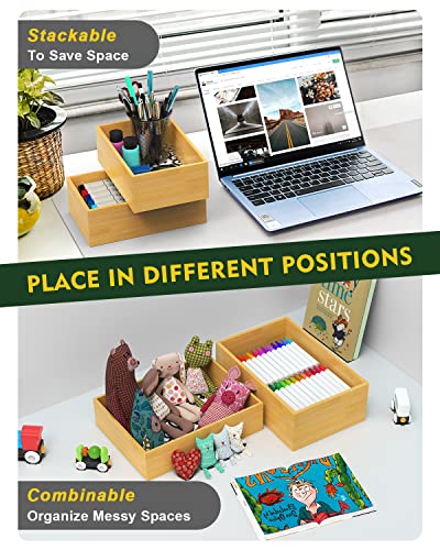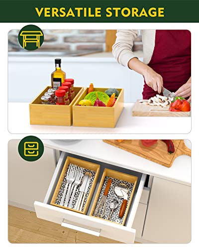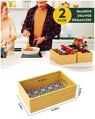 VenDotbi - صندوق تخزين منظم للادراج من الخيزران من فيندوتبي، منظم ادراج متعدد الاستخدامات قابل للتكديس للمطبخ والحمام والمكتب والمكياج والمجوهرات - عبوة من قطعتين