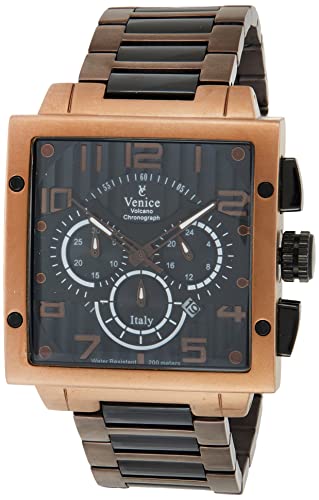 Venice - ساعة انالوج بعقارب كرونوغراف مربعة بلونين من الستانلس ستيل للرجال T6006-IPC-B من فينيس - اسود وبرونزي, متعدد الألوان