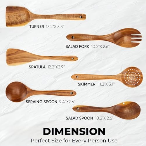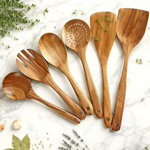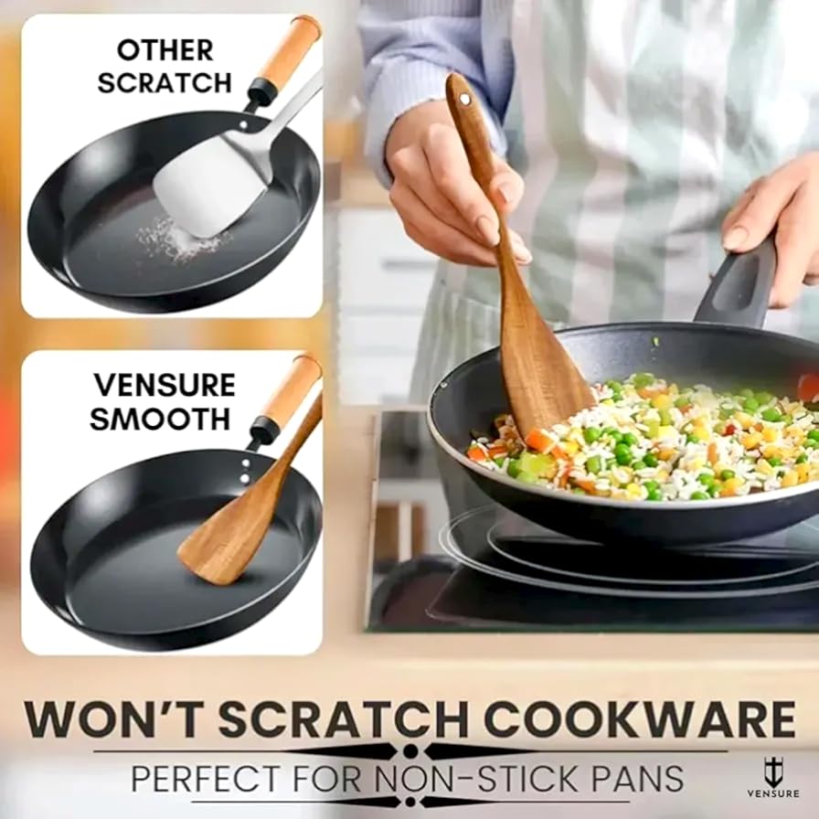 Vensure - معالق خشبية للطبخ مكونة من 6 قطع، مجموعة معالق مسطحة خشبية للطبخ، أدوات طبخ خشبية غير لاصقة - مريحة وناعمة - معالق خشبية للطبخ، معلقة خشبية بتصميم يدوي من فينشور