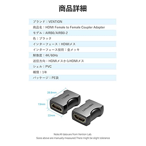 VENTION - محول HDMI من فينشن موصل أنثى إلى يمتد حتى 20 متر مقرنة للأماكن الضيقة واحد/ AIRB0
