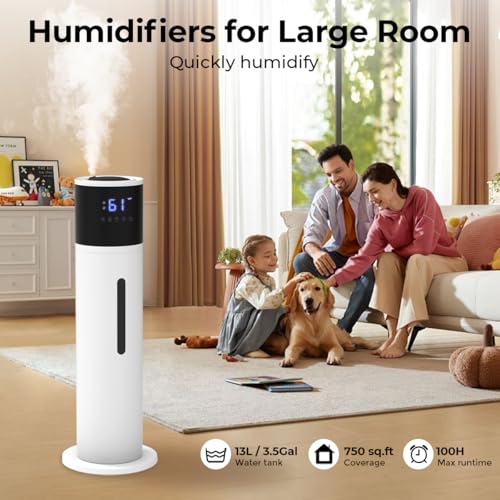 - مرطب للغرف الكبيرة: مع خزان مياه سعة 13 لتر/3.4 جالون، يمكن أن تعمل أجهزة ترطيب غرفة النوم لمدة تصل إلى 40-100 ساعة وتغطي مساحة 750 قدم مربع. مرطب الهواء المنزلي هذا مثالي لغرفة النوم وغرفة المعيشة وحضانة الأطفال والمكتب والنباتات والحيوانات الأليفة.