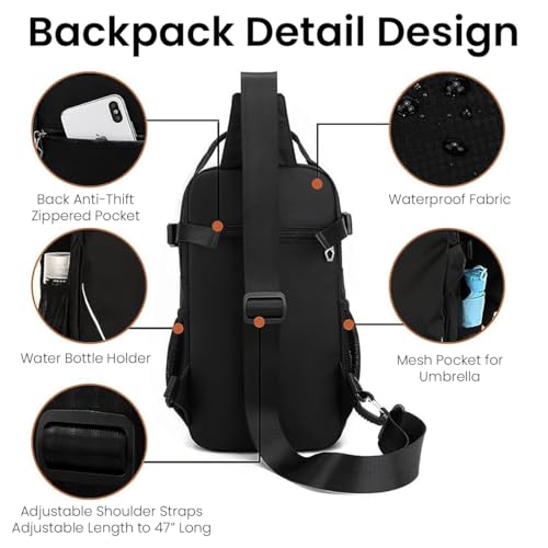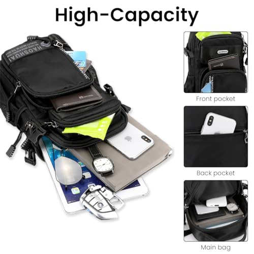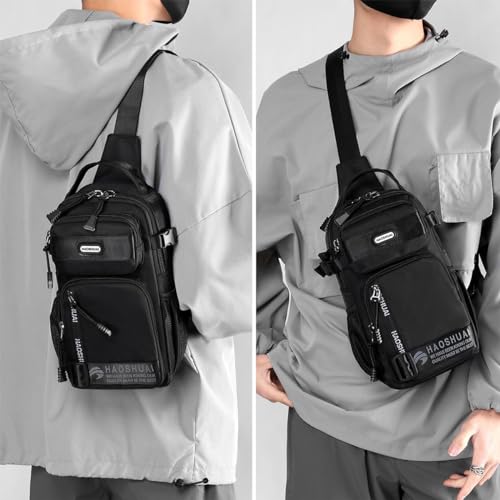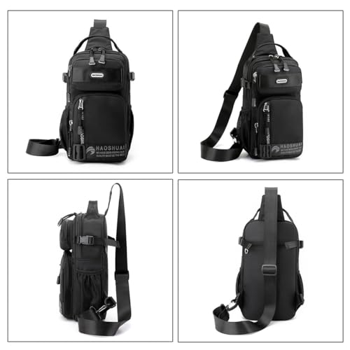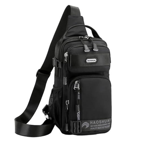 Venzina - شنطة كتف للرجال من فينزينا® كروس متعددة الجيوب جانبية عصرية بمقبض وحزام قابل للتعديل صدر مريحة للتنقل والسفر أسود