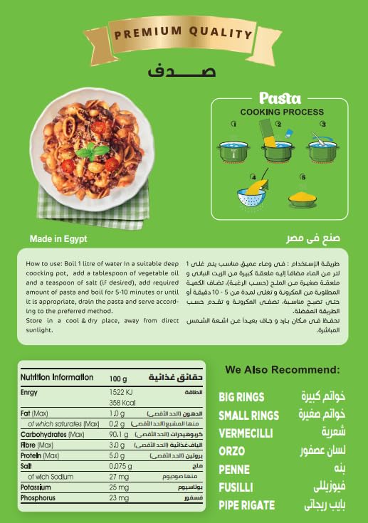 - الملمس: يحافظ على قوام ممتاز وثبات عند الطهي، مما يوفر تجربة معكرونة أصلية