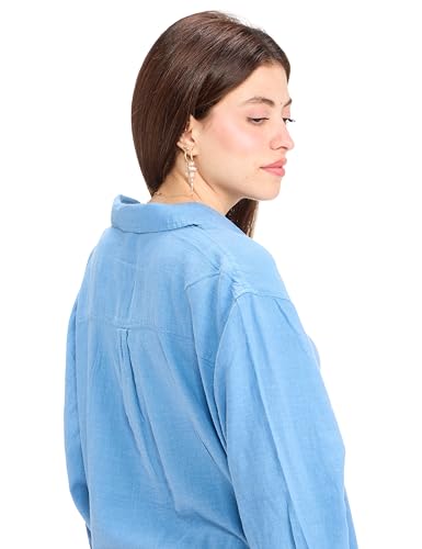 VERO MODA - قميص كتان حديث من نسيج محبوك بأكمام طويلة للنساء من فيرو مودا، (عبوة من 1 قطعة)