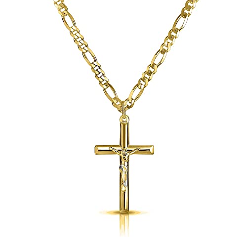 Verona Jewelers - مجوهرات فيرونا للرجال والنساء ستانلس ستيل 24 بوصة، سلسلة فيجارو 3.8 ملم، عقد بدلاية صليب (لون فضي)