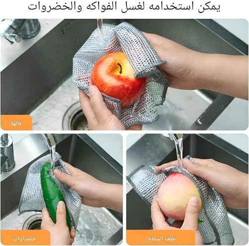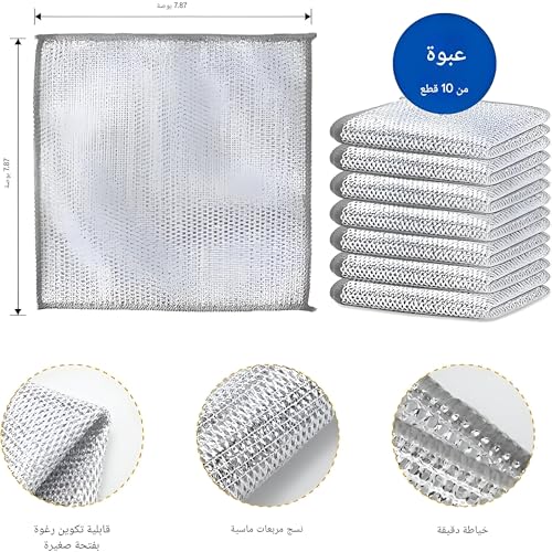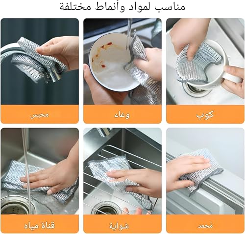 - غيّر روتين التنظيف الخاص بك مع ملابسنا المبتكرة متعددة الأغراض المصنوعة من الستانلس ستيل. قل وداعًا للبقع العنيدة ورحب بالأطباق النظيفة اللامعة. مصممة للتنظيف الرطب والجاف، يجب أن تكون هذه الملابس المقاومة للخدش في مطبخك. مع عبوة من 10 ملابس متينة، سيكون لديك دائمًا واحدة جاهزة للتعامل مع أي فوضى، مما يضمن بقاء مطبخك نظيفًا وصحيًا.