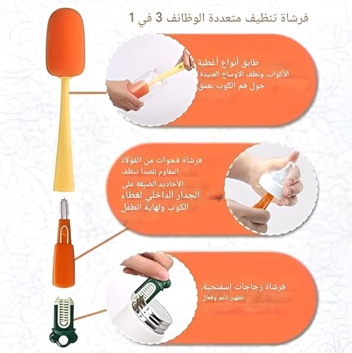 - فرشاة التنظيف المبتكرة هذه مجهزة بثلاثة رؤوس من الفُرَش المميزة: رأس إسفنجي لكشط الفجوات والأخاديد الضيقة، وفرشاة للشقوق لمعالجة الزوايا الأصغر مثل فوهات الغلاية وحلمات البرونة، ورأس فرشاة مطاطي ناعم مصمم خصيصًا لإزالة البقع العنيدة من حواف الأكواب. تضمن هذه المجموعة متعددة الوظائف ألا تترك أي زاوية من حاويات المشروبات المفضلة لديك دون تنظيفها، مما يجعل روتين التنظيف الخاص بك أكثر كفاءة.