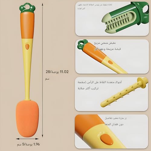 Generic - أداة تنظيف متعددة الاستخدامات - فرشاة بتصميم جزرة 3 في 1 بمقبض ممتد لتنظيف سهل للزجاجات والفازات والحاويات الضيقة (قطعتين)