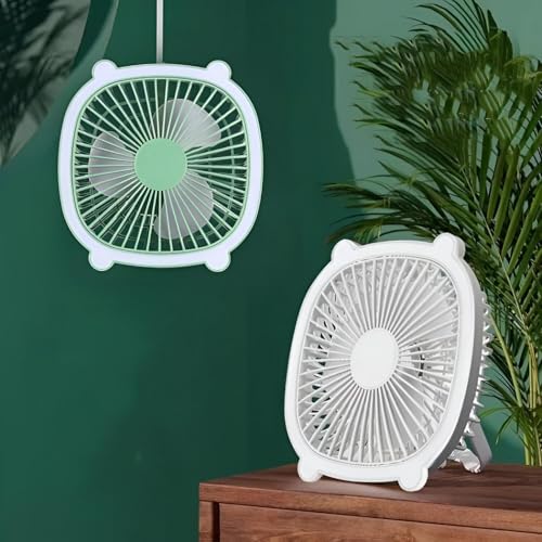 Generic - مروحة متعددة الاستخدامات - جهاز تدوير هواء بثلاث سرعات قابل لاعادة الشحن مع اضاءة LED، تصميم منخفض الضوضاء، مثالي للتخييم والمطبخ والمكتب والتعتيم، يوفر تدفق هواء موحد مع اضاءة مدمجة