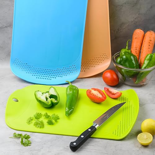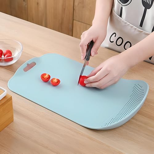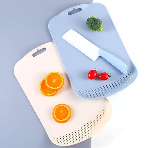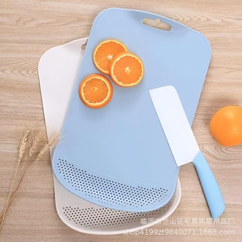 Generic - لوح تقطيع متعدد الاستخدامات لتحضير الطعام - سطح بلاستيكي ثنائي الوظائف مع شبكة تصريف لتقطيع الفواكه والخضروات، اداة مطبخ عملية وامنة على البيئة بلون عشوائي