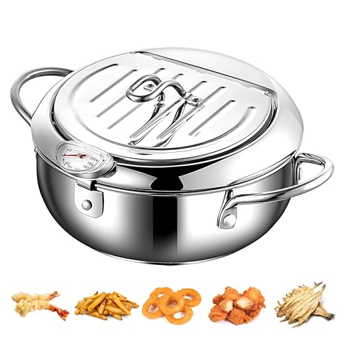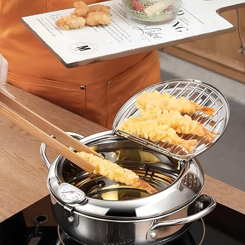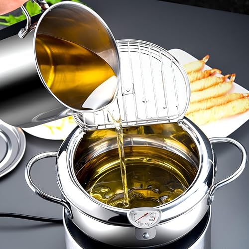 Generic - طاسة قلي متعددة الاستخدامات من الفولاذ المقاوم للصدأ مثالية للقلي العميق وطهي الوجبات الخفيفة وأطباق السمك واللحوم مع الحفاظ على الحرارة بشكل متساوي