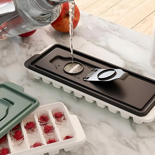 - مزود بغطاء آمن، يمنع هذا القالب الانسكابات ويحافظ على إبداعاتك آمنة من روائح الفريزر. يساعد الغطاء أيضًا في الحفاظ على نضارة المحتويات، مما يضمن بقاء مكعبات الثلج أو الحلوى نظيفة ولذيذة حتى تصبح جاهزًا للاستخدام.