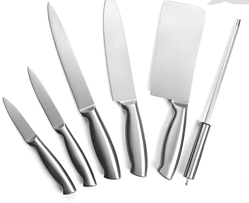 Generic - مجموعة سكاكين مطبخ متعددة الاستخدامات - مجموعة من 6 قطع من الستانلس ستيل للقطع الدقيق والتقطيع مع مقابض مريحة
