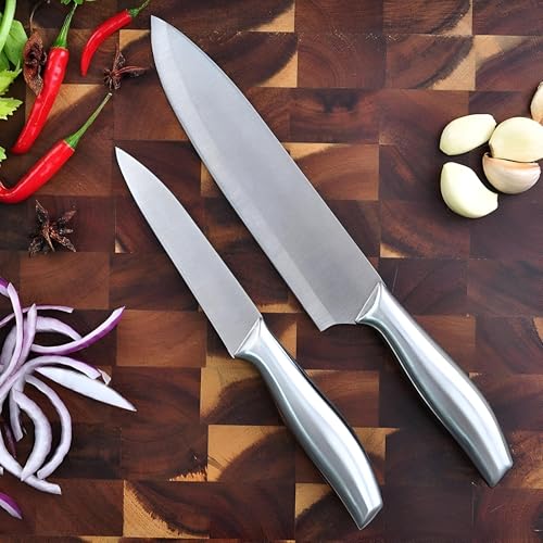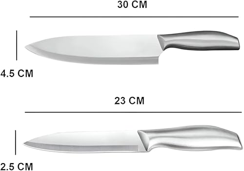 - مصممة بمظهر عصري أنيق، تضيف مجموعة السكاكين هذه لمسة احترافية إلى أي ديكور مطبخ، سواء في المنزل أو في مطعم تجاري.