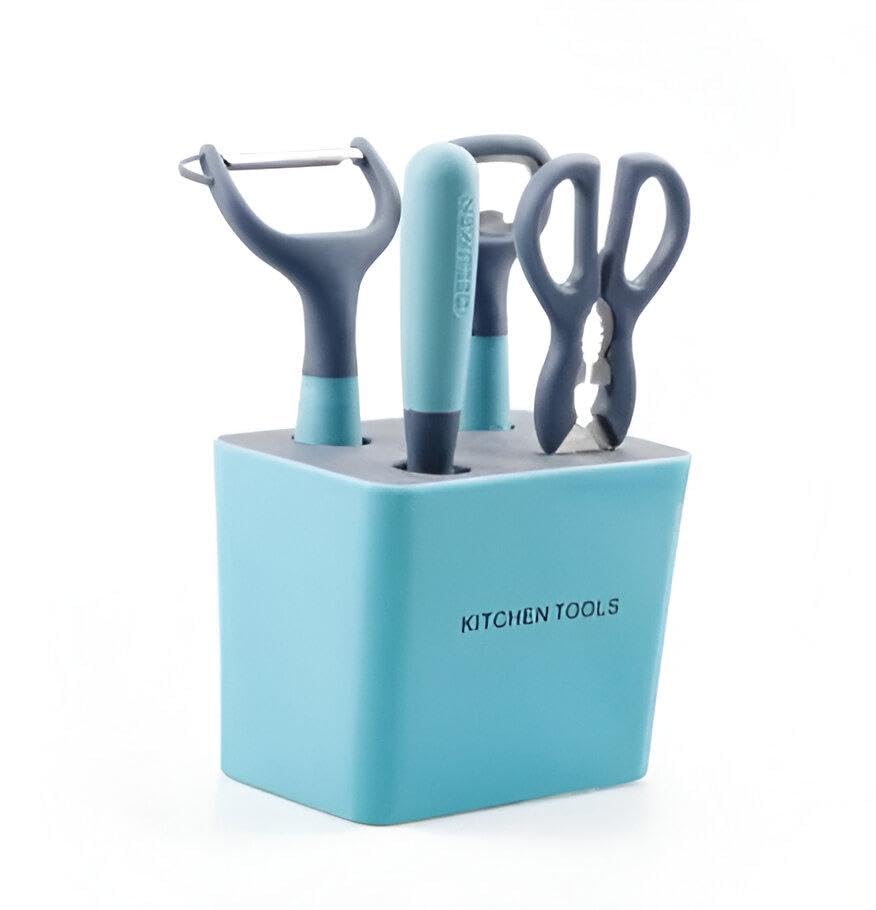 Generic - منظم مطبخ متعدد الاستخدامات - يتميز بـ 4 فتحات تتضمن سكين ومقشرة وفتاحة ومصفاة بتصميم بلاستيكي متين فريد وملون