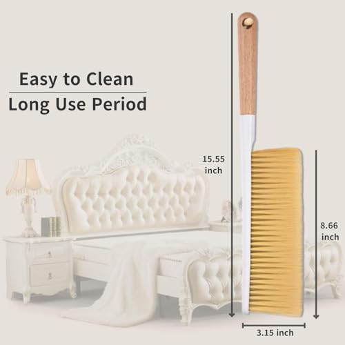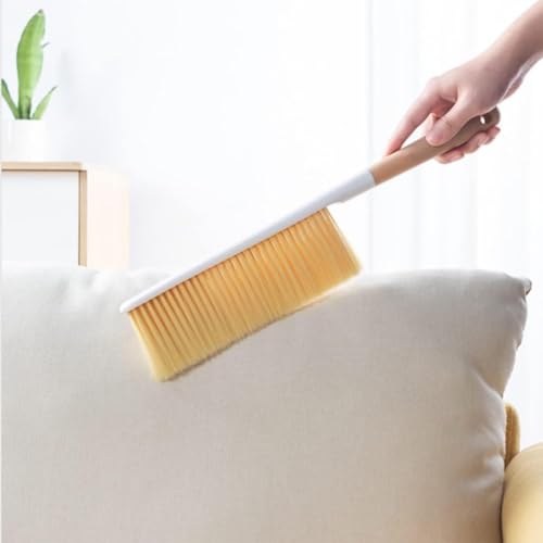 Generic - فرشاة غبار متعددة الاستخدامات بمقبض طويل وشعيرات ناعمة - فرشاة بمقبض خشبي للسيارات والأثاث والكنب والملابس والحدائق، لون بيج
