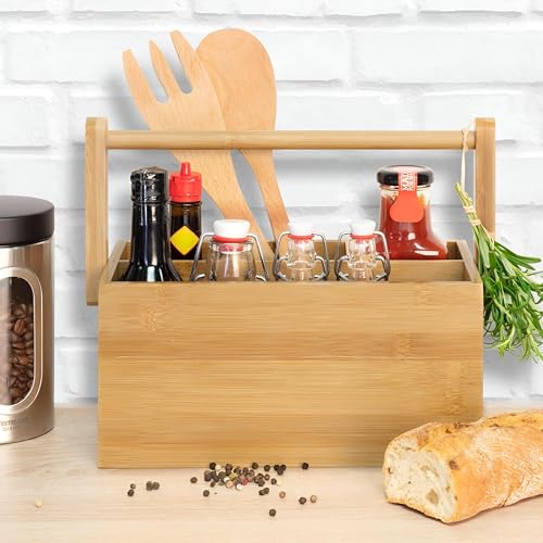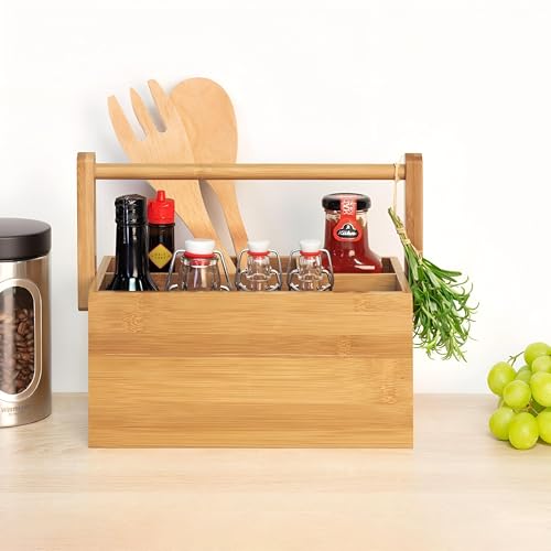 Generic - منظم متعدد الاستخدامات - حل تخزين خشبي 4 مشابك عملية لعرض ادوات المائدة والصلصات، حجم صغير لسهولة الحمل (موديل 1)