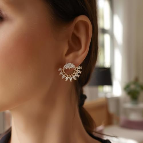 Generic - اقراط كبس متعددة الاستخدامات - اقراط عصرية من خليط معدني فضي مع زركونيا مكعب دائري، لمسة نهائية مصقولة، مشبك دفع خلفي، مثالية لاجتماعات المكتب والحفلات المسائية.