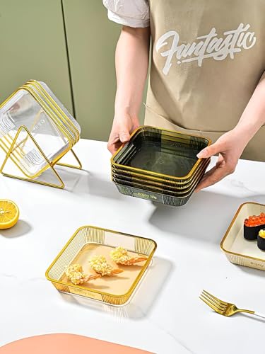 - تحتوي هذه المجموعة الأنيقة والعصرية على ستة أطباق من الأكريليك، كل منها مصمم لتعزيز تجربة تناول الطعام الخاصة بك. الأطباق ليست جذابة بصريًا فحسب، بل متينة أيضًا، مما يجعلها مثالية للاستخدام اليومي والمناسبات الخاصة.