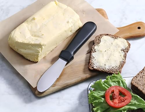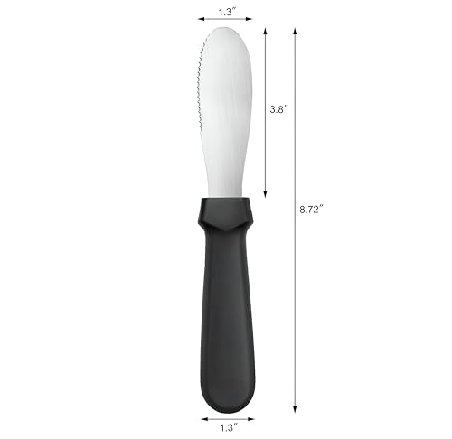 - تتميز أداة توزيع الزبدة بطول إجمالي يبلغ 8.75 انش وطول الشفرة 3.75 انش، مما يوفر النسب المثالية للتوزيع الفعال. يسمح تصميم الشفرة بالتوزيع الأمثل للزبدة، مما يجعل الأمر أسهل للطهاة والطهاة المنزليين على حد سواء لتحقيق التوزيع المثالي دون تمزيق الخبز أو إتلاف الأسطح الناعمة.