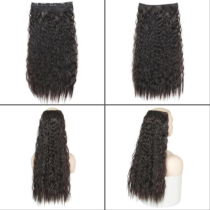 Generic - وصلات شعر مموجة متعددة الاستخدامات بمشبك في وصلات شعر طويلة ومموجة غير محددة للشعر الناعم للنساء (اسود)