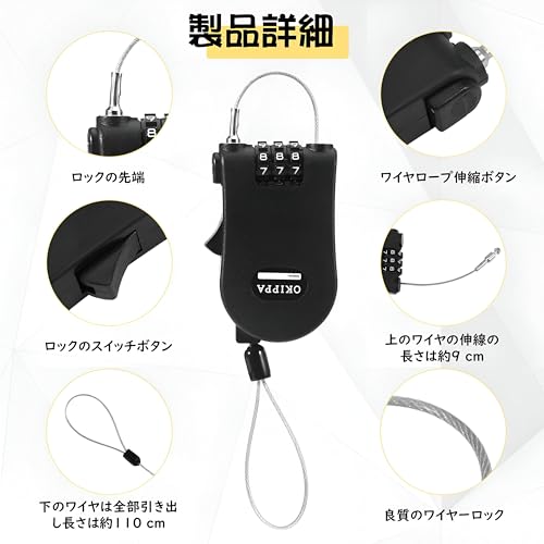 - بفضل تركيبة بسيطة من 3 أرقام، يوفر هذا القفل ميزة رمز مرور سهل التذكر مما يضمن الراحة والأمان. كما أن تصميم السلك القابل للسحب يعني أنه لن يشغل مساحة أو يعيقك أثناء حمله.