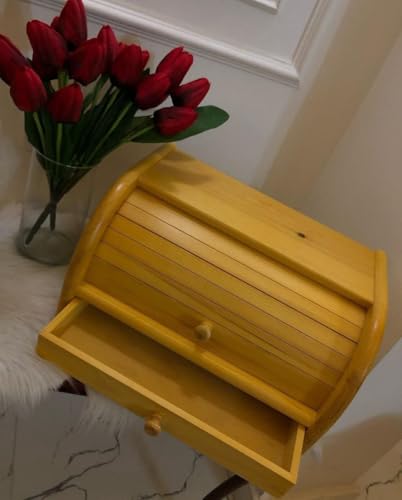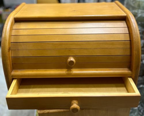 Generic - صندوق تخزين خشبي متعدد الاستخدامات بغطاء دائري انسيابي ودُرج سفلي – مثالي لتنظيم الأدوات المكتبية والإكسسوارات في المنزل أو المكتب