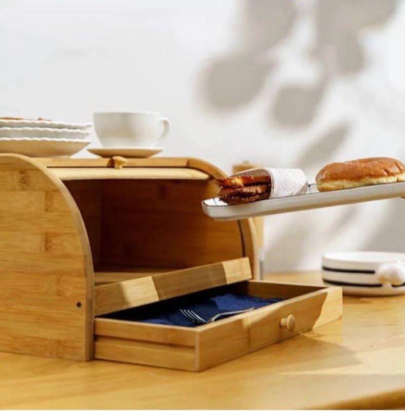 - تخزين متعدد: مثالي لحفظ المخبوزات والمنتجات الغذائية في الجزء العلوي مع درج منفصل للأدوات