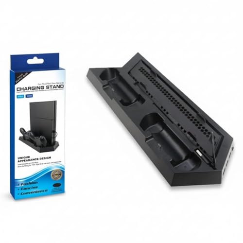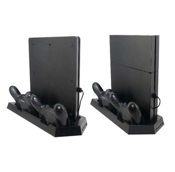 Generic - قاعدة شحن وتحميل عمودي متوافق مع PS4 / PS4 Slim مع شاحن 2 يد التحكم / مزود بمروحة تهويه قوية