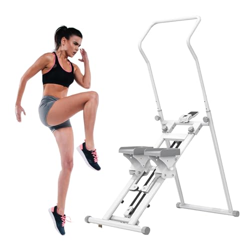 Oaseioyn - جهاز تسلق عمودي لتمارين الصالة الرياضية المنزلية، جهاز سلم لتمرين الجسم بالكامل، جهاز تسلق عمودي صغير قابل للطي لتمارين الكارديو مع نطاق خطوات ممتد، مقود ودواسات قابلة للتعديل