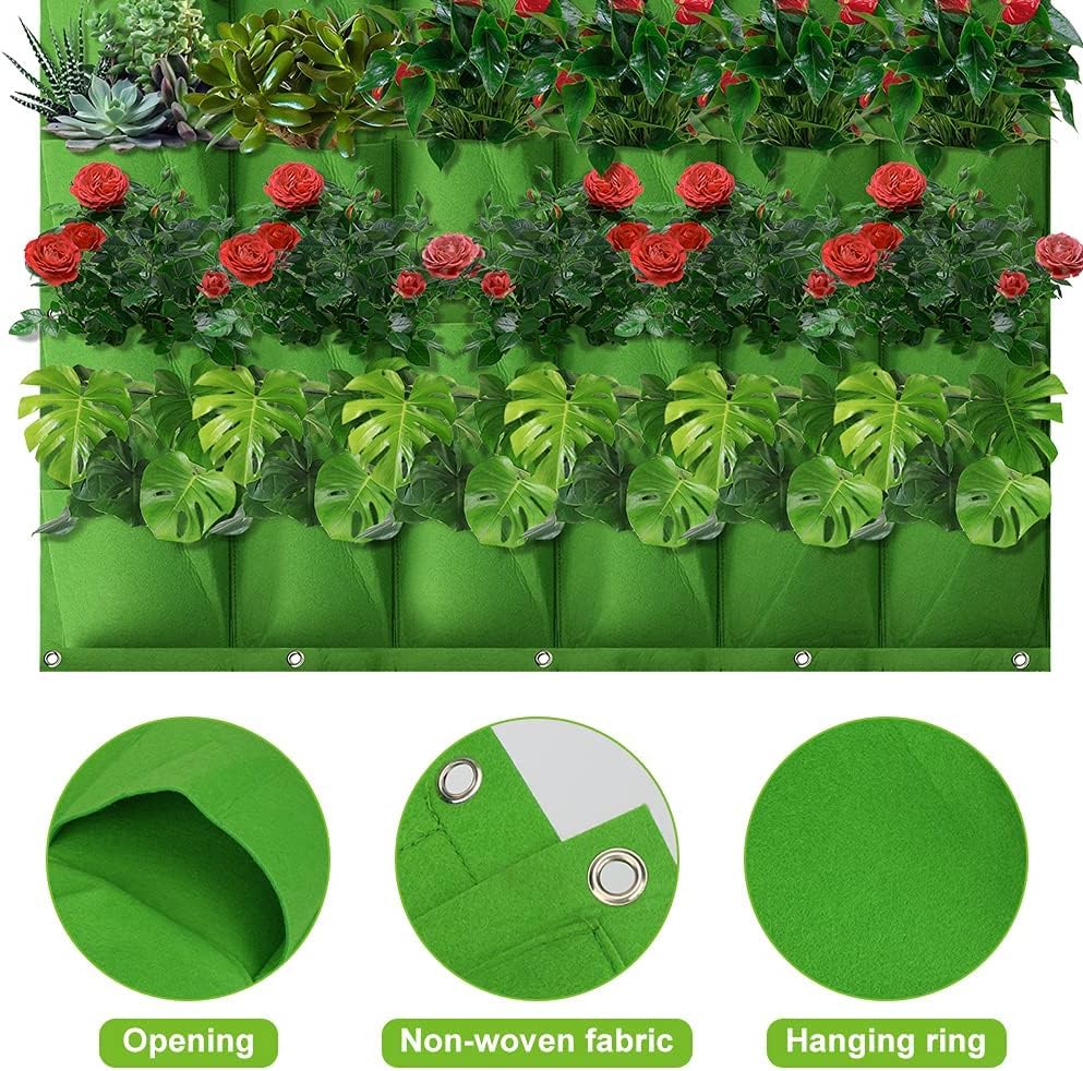 - تصميم بـ 36 جيباً واسعاً: توفر مساحة كافية لزراعة مجموعة متنوعة من النباتات، الأعشاب، والزهور في مساحة عمودية صغيرة، مما يجعلها مثالية للشرفات والحدائق الضيقة.