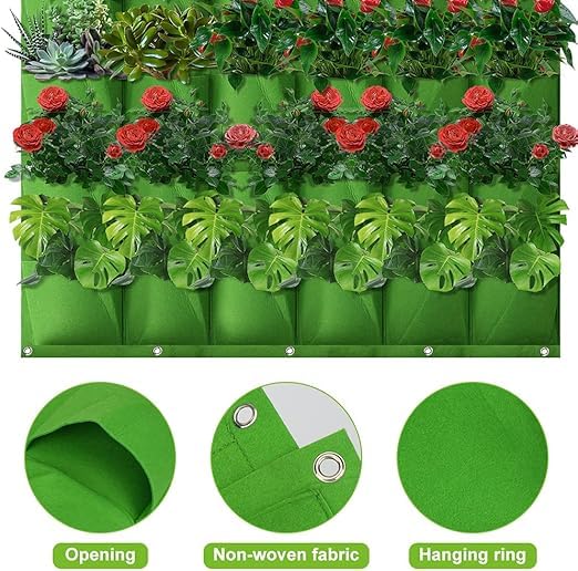 - 🍀🍀【سعة تخزين كبيرة】تأتي مع 36 جيب، 16 سم (طول × عرض)، جيب واحد، كبير بما يكفي لحمل النباتات أو وعاء الزهور، وأصيص النباتات العمودي يضاعف مساحة النمو في الفناء أو الشرفة، فهو يوفر مساحة أكبر ولكنه خفيف الوزن، بحيث يمكنك تحريكه بسهولة أكبر. تستخدم أكياس الحديقة الخاصة بنا أقمشة أكثر سمكًا ويمكن أن تتحمل وزنًا أثقل من أكياس الزراعة الأخرى.